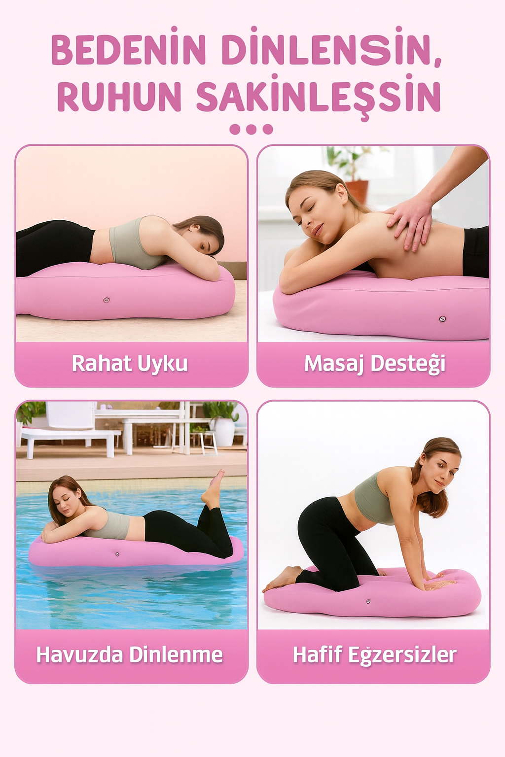 Uyku dışında masaj, yoga, nefes egzersizleri ve hatta havuzda dinlenme için kullanılabilir. Çok yönlü yapısı sayesinde sadece yatak değil, konfor alanı sunar.